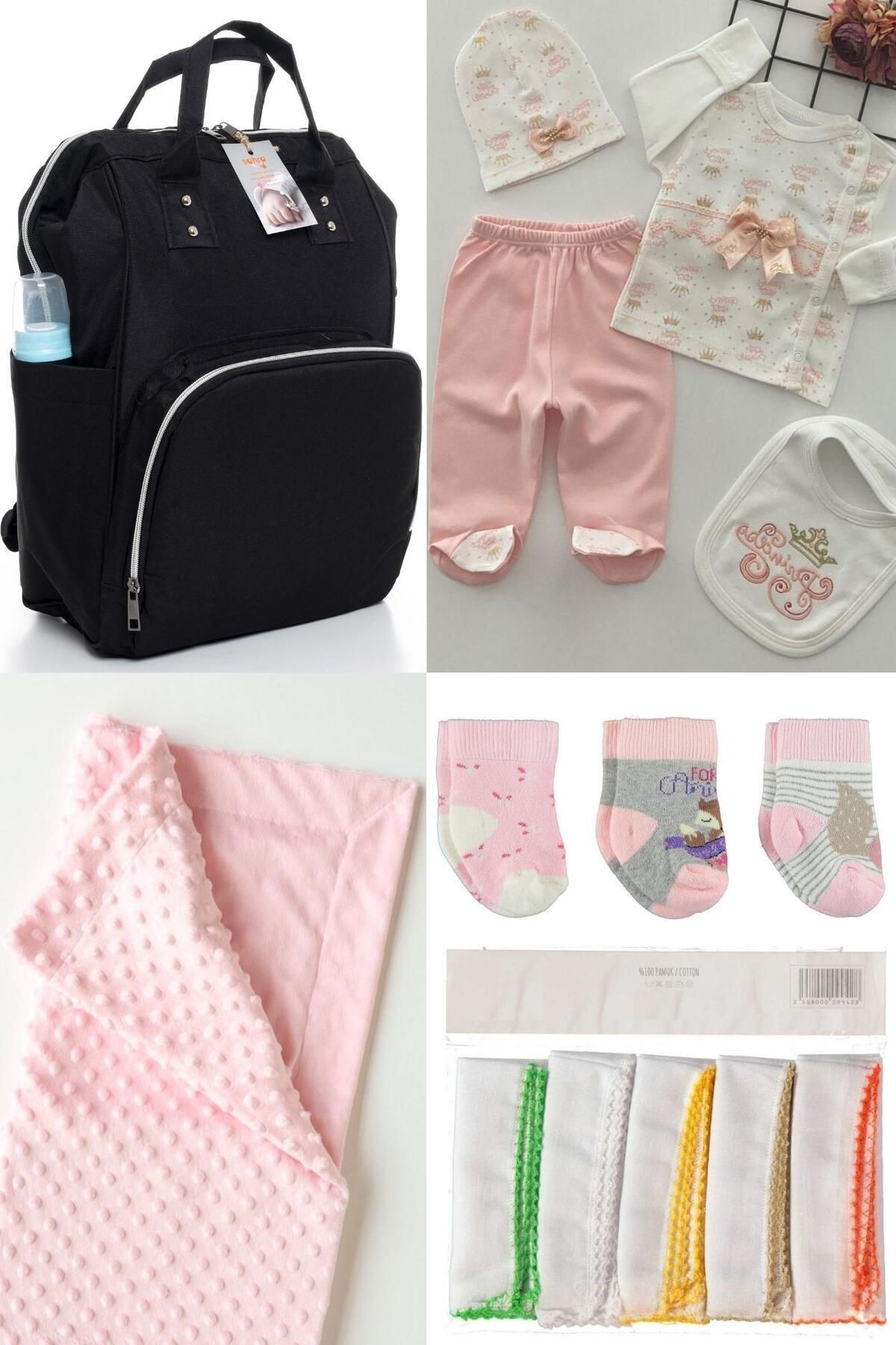 5'li Büyük Doğum Seti (Bebek Bakım Çantası, Hastane Çıkışı, Battaniye, 10'lu Mendil ve 3'lü Çorap)