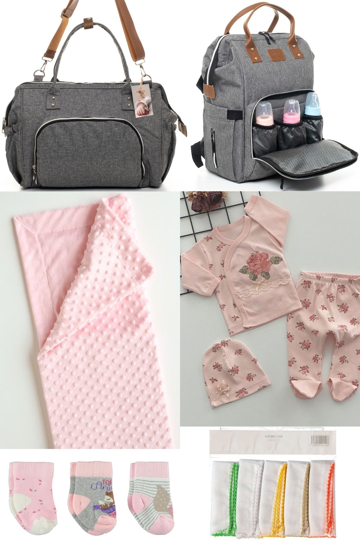 6’LI BEBEK DOĞUM SETİ(HASTANE ÇIKIŞ,ANNE&BEBEK BAKIM OMUZ VE SIRT ÇANTASI,BATTANİYE,ÇORAP VE MENDİL)