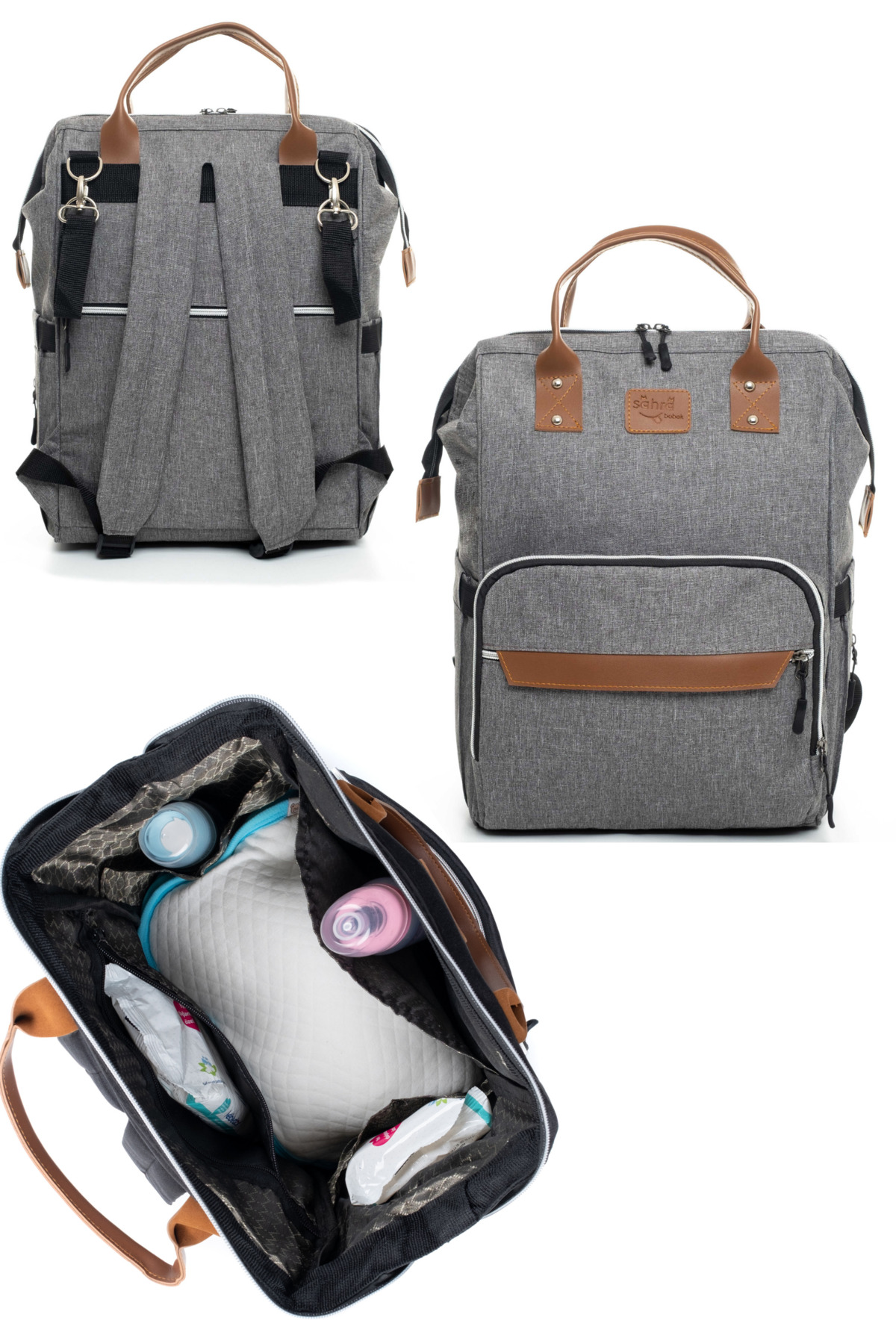 El çantası, sırt çantası ve bebek arabasına takılarak fonksiyonel olarak kullanım kolaylığı sağlar.