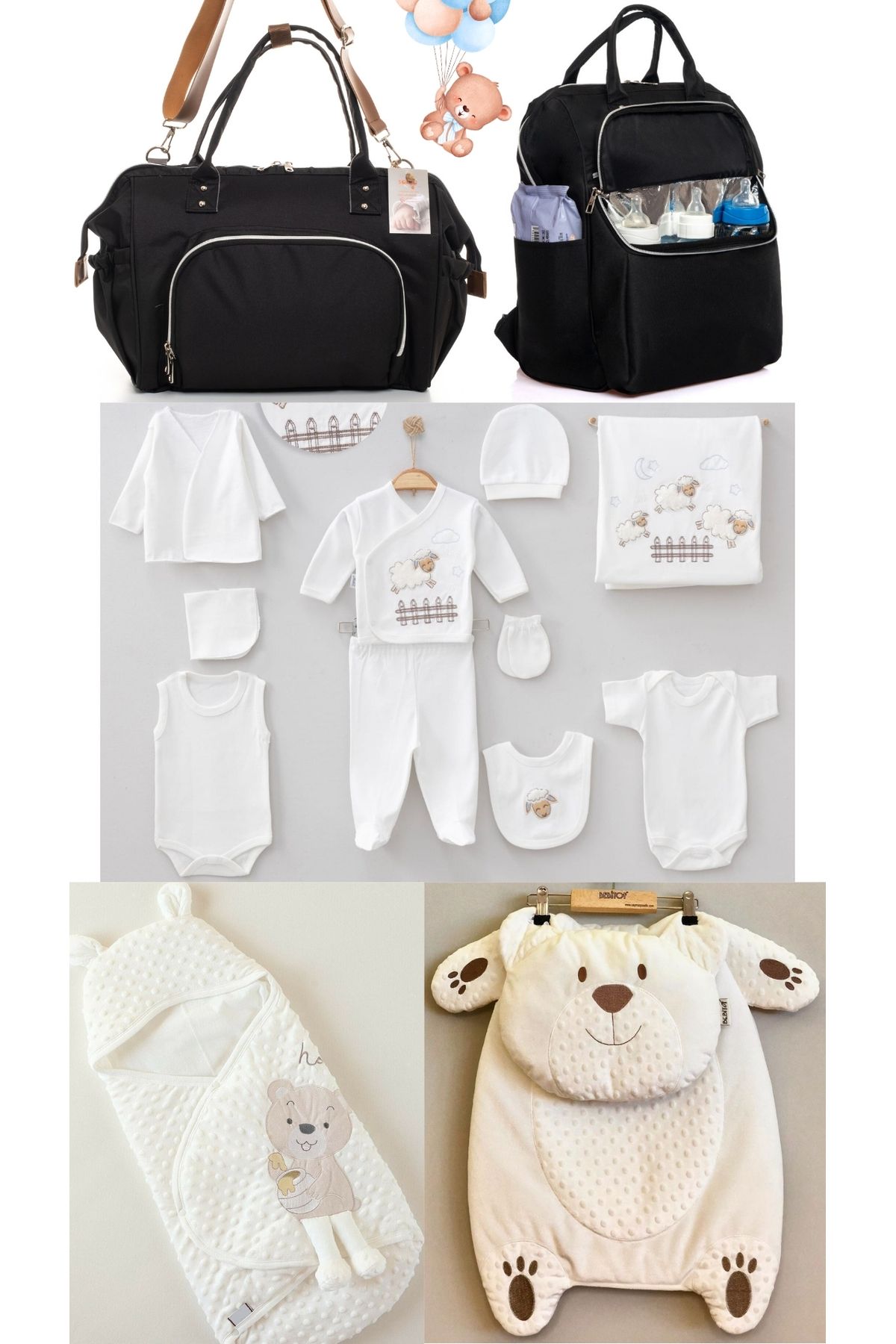 Büyük Doğum Seti ( Bebek Bakım Omuz ve Sırt Çantası, 10’lu Hastane Çıkışı, Kundak ve Altaçma)