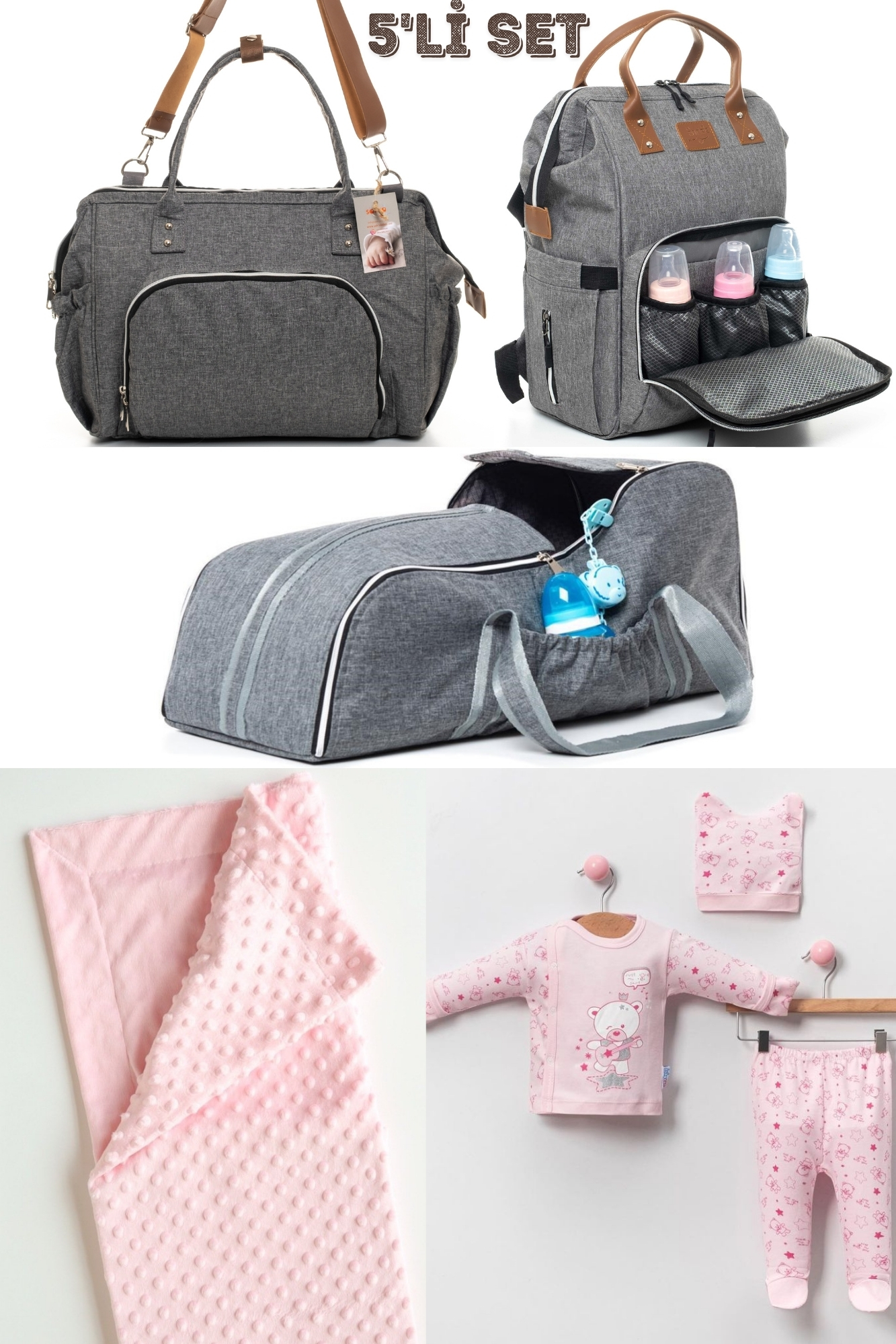 Büyük Doğum ve Bebek Taşıma Seti (Anne Bebek Bakım Omuz ve Sırt Çantası, Portbebe, Hastane Çıkışı, Nohut Battaniye)